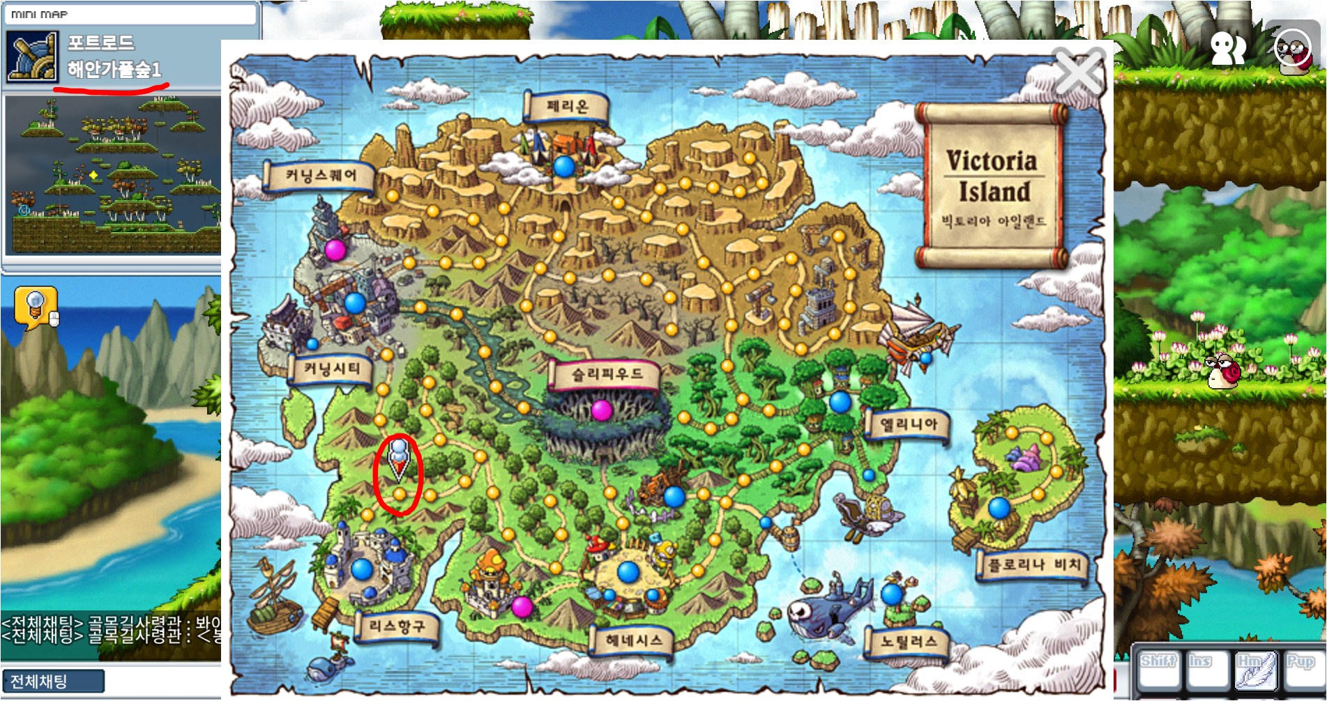 마을 오른쪽 포탈을 타고 2번 이동하면 해안가풀숲1이 나오는데, 여기서 초록, 파랑, 빨강 달팽이가 모두 있다.