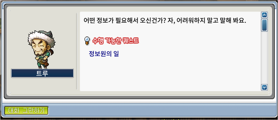 정보상인 트루에게 돌아와보면 [정보원의 일] 퀘스트를 완료할 수 있다.
