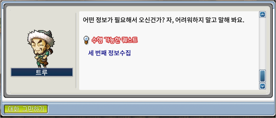 레벨 23이 넘었다면 리스항구의 트루에게 퀘스트를 수령해주자.