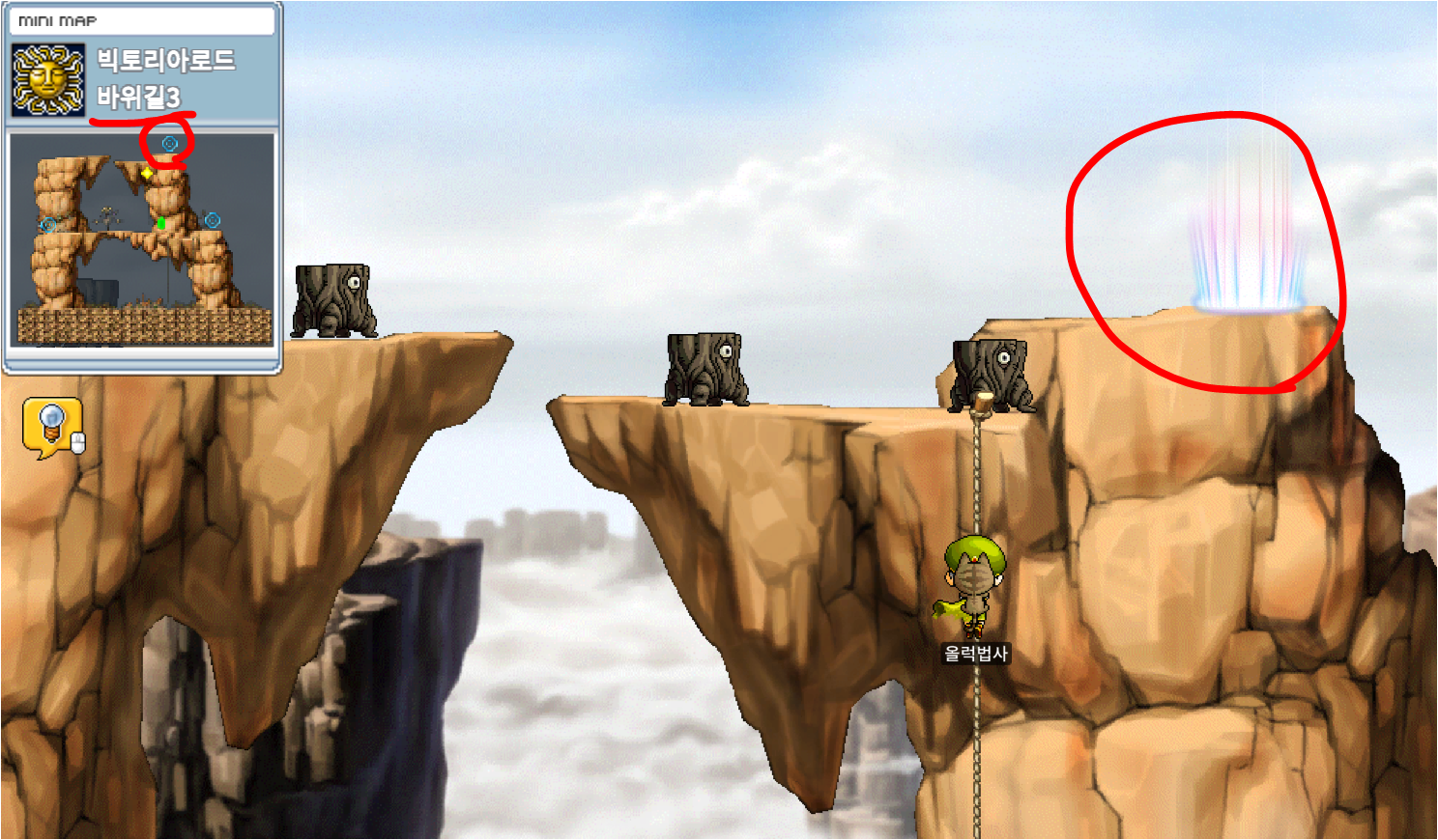오른쪽 포탈타고 바위길3까지 가서 위쪽 포탈을 타면된다.
