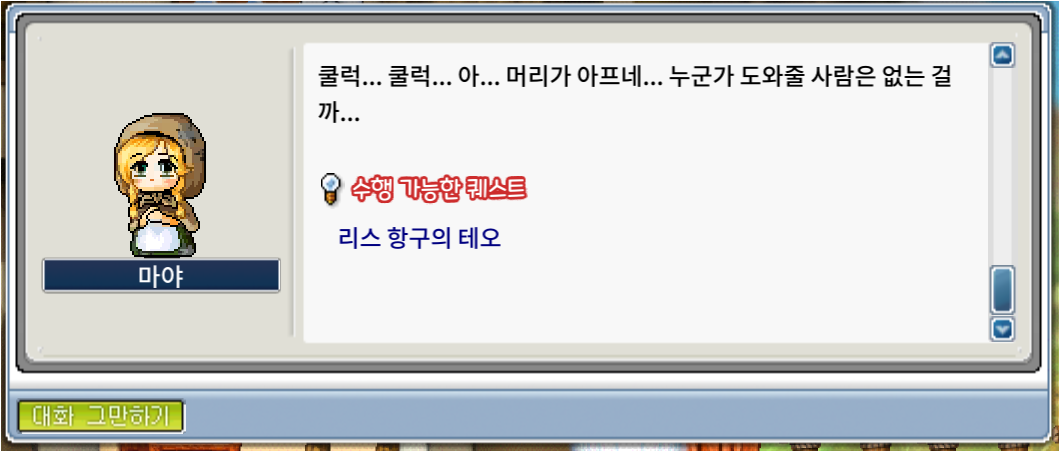 리스 항구의 테오에게서 퀘스트를 받을 것 같지만 헤네시스의 마야에게 퀘스트를 수령한다.