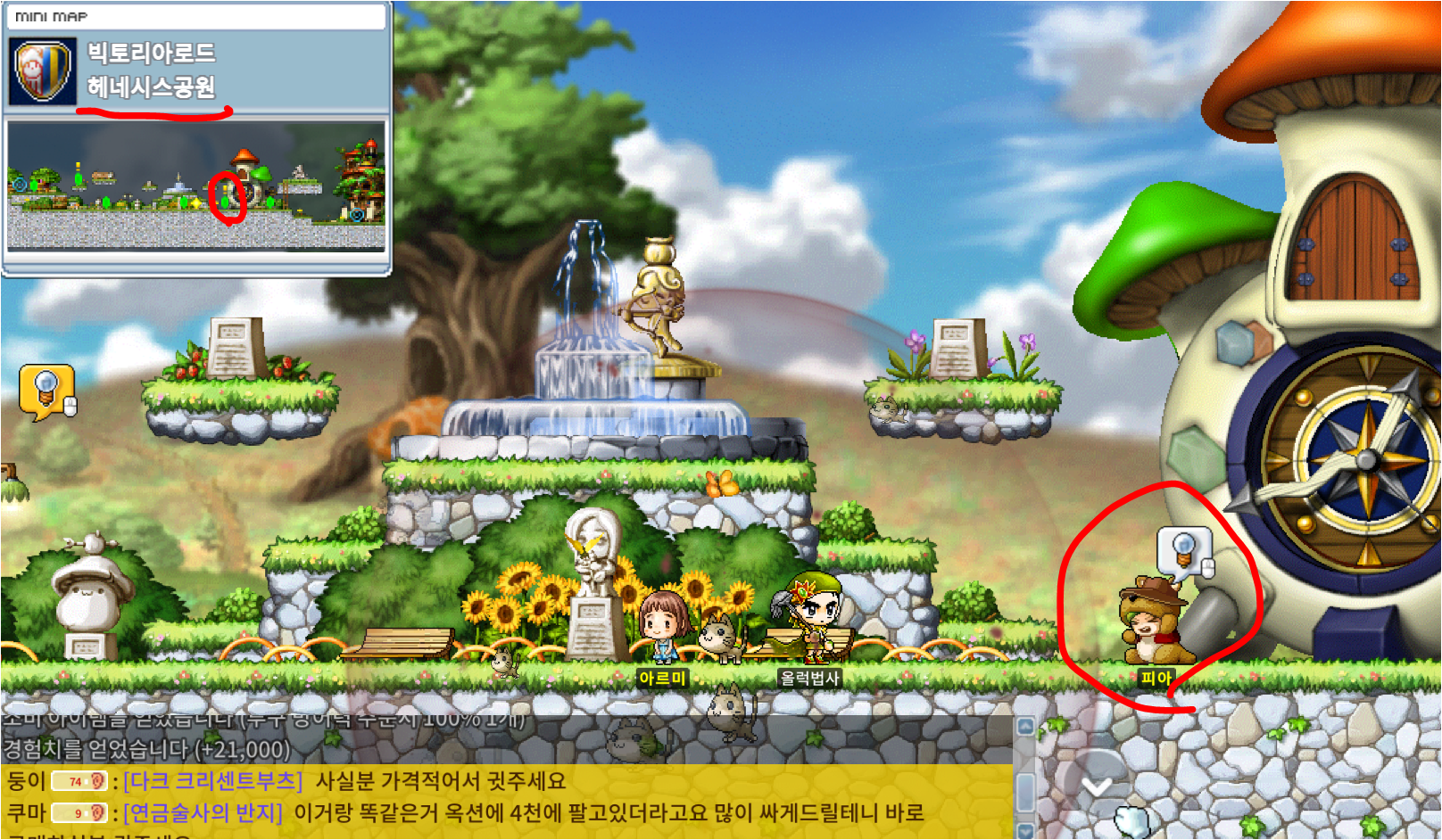 헤네시스 공원의 피아에게 퀘스트를 수령하자.
