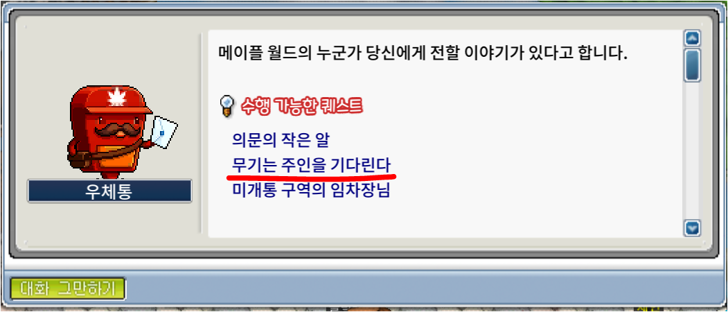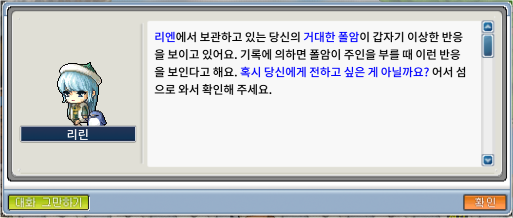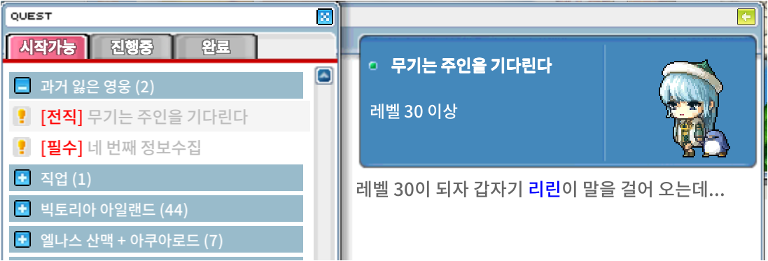아란으로 30렙을 찍으니 퀘스트가 하나 날아온다.