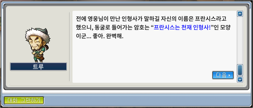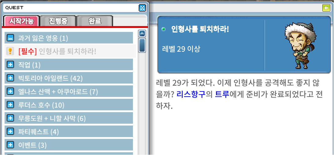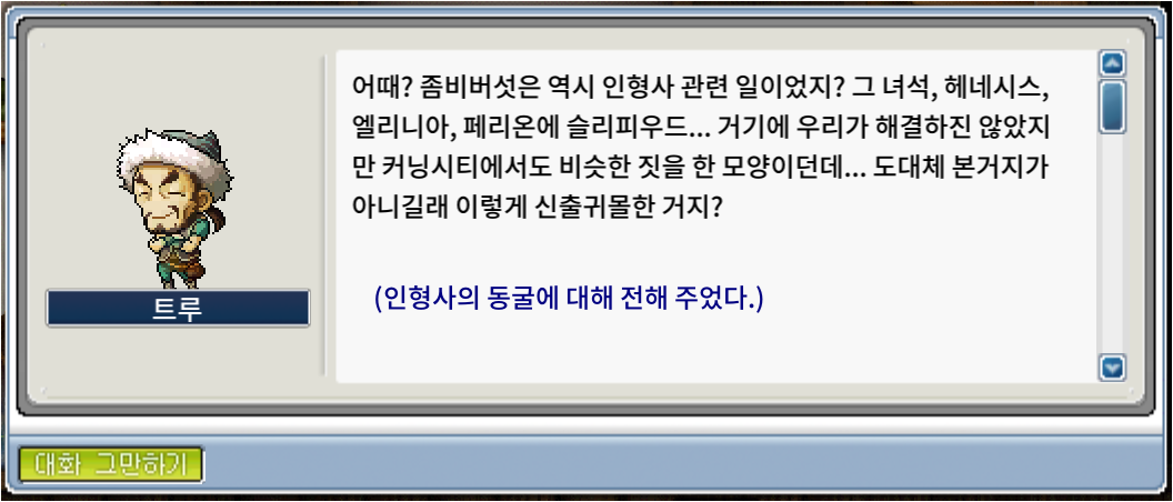 29레벨이 넘으면 트루에게서 인형사를 퇴치하라! 퀘스트를 받을 수 있다.