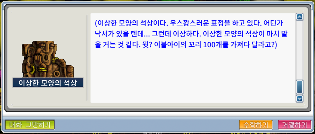 슬리피우드의 이상한 모양의 석상에게 퀘를 받아주자.