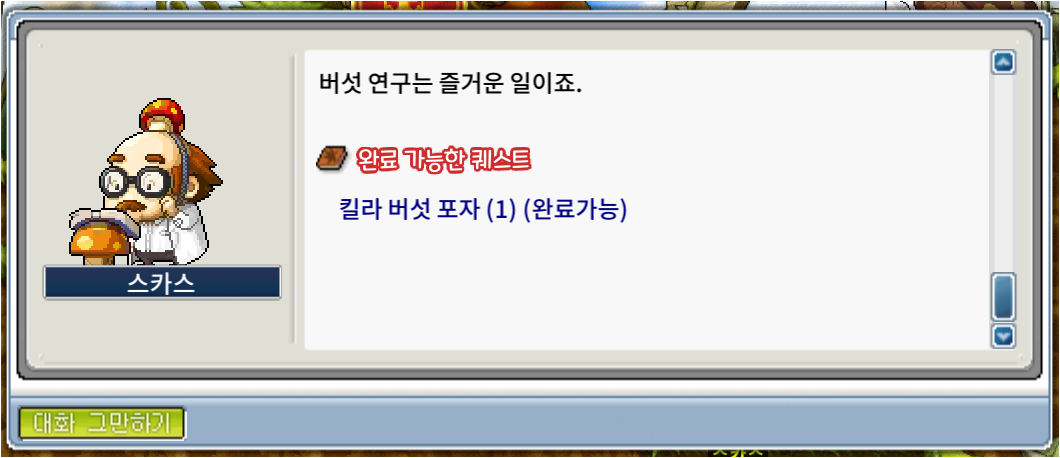 완료받으면 킬라 버섯 포자를 준다.